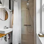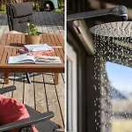 The Glesborg property includes a bathroom with a shower and a washing machine.